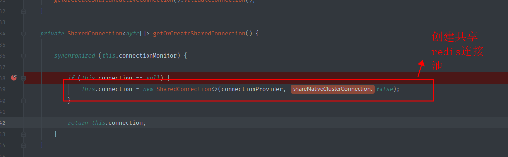 源码跟踪发现,第一次this.connection == null,需要开始创建共享连接池