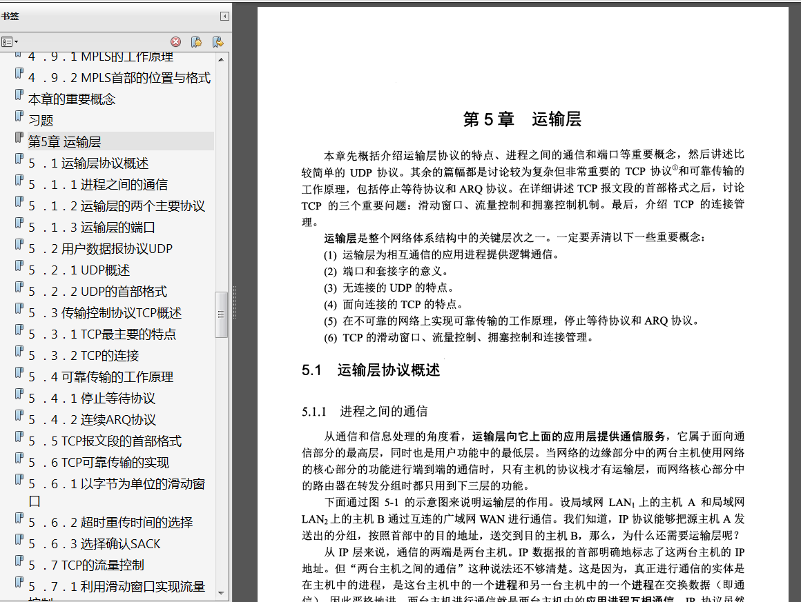 知识点丰富,应用层、安全、无线网络部分有点意犹未尽。概念准确、论述严谨、内容新颖、图文并茂,突出基本原理和基本概念的阐述,同时力图反映计算机网络的一些 最新发展。分为9章,比较全面系统地介绍了计算机网络的发展和原理体系结构、物理层、数据链路层(包括局域网)、网络层、运输 层、应用层、网络安全、互联网上的音频/视频服务,以及无线网络和移动网络等内容。各章均附有习题(附录A给出了部分习题的答 案和提示)。