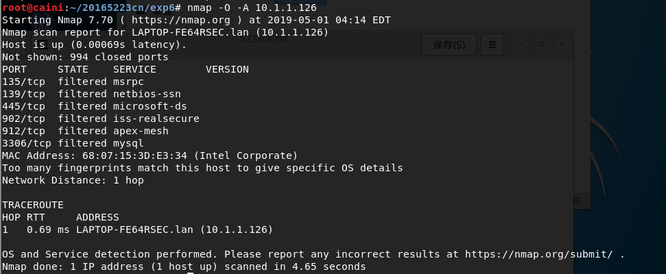 nmap -O -Pn 10.1.1.126获取目标机的操作系统和服务版本等信息