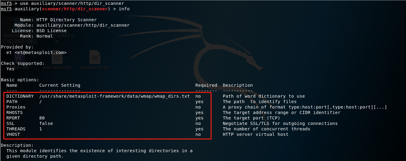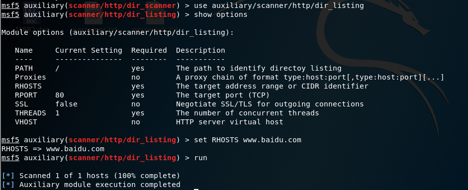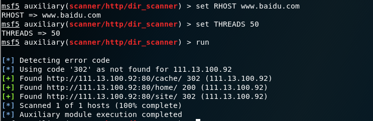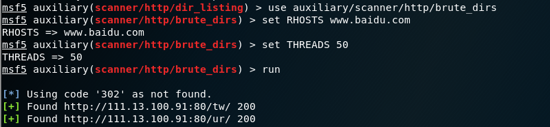 <font size=3> 方法是利用msf自动化的工具:例如metasploit的brute_dirs,dir_listing,dir_scanner等辅助模块,主要是暴力猜解。</font>