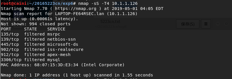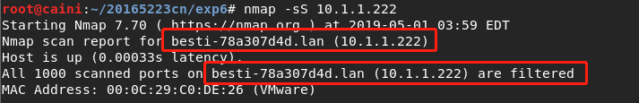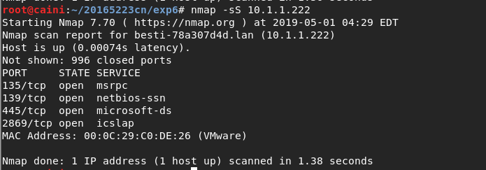 nmap -sS 10.1.1.222可以看见开放的TCP端口与对应的服务 - emmmm其实本来应该看到开放的端口与服务的,但没有显示出来