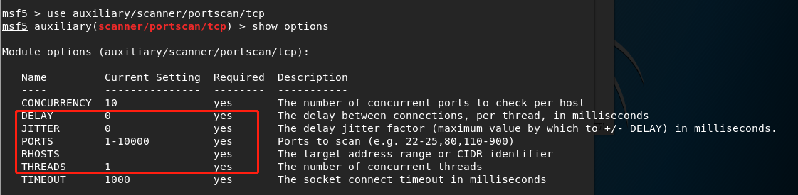 set RHOSTS 10.1.1.222/24 //扫描主机网段