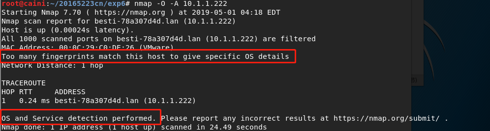 - 提示信息:Too many fingerprints match this host to give specific OS details