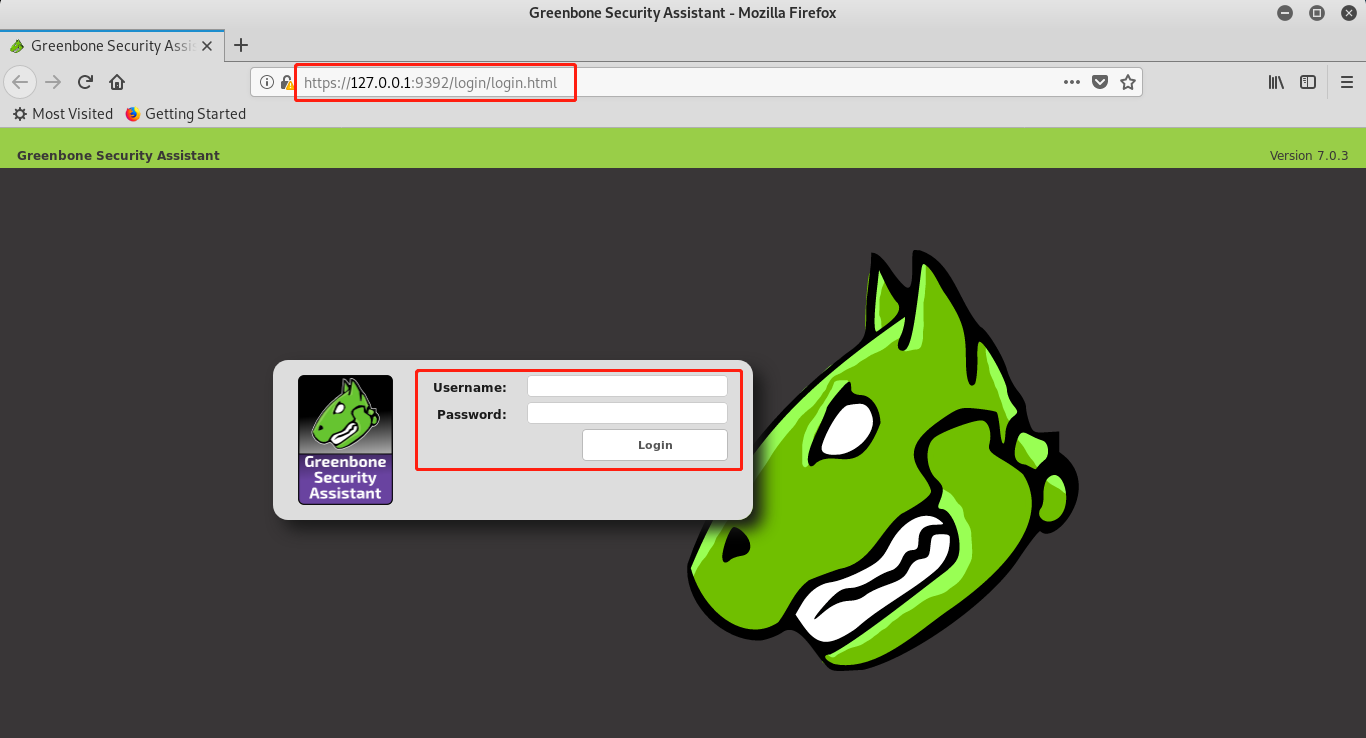 openvas-start启动OpenVAS会自动弹出网页或者可以打开浏览器,在搜索栏输入