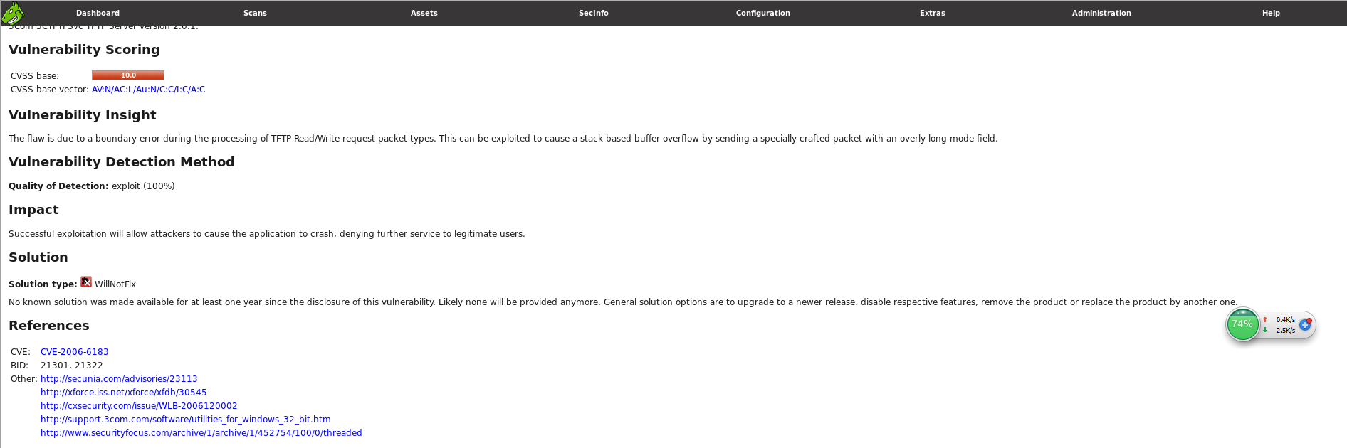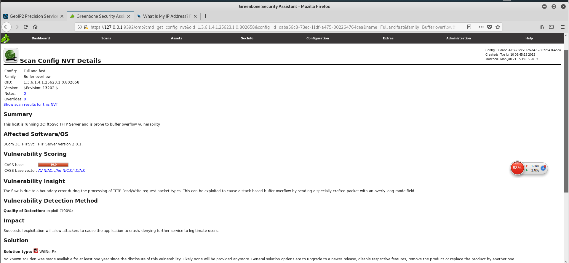 Summary描述该漏洞:"This host is running 3CTftpSvc TFTP Server and is prone to buffer overflow vulnerability",即说明该漏洞位于该主机运行3CTftpSvc TFTP的服务器中,容易出现缓冲区溢出漏洞。