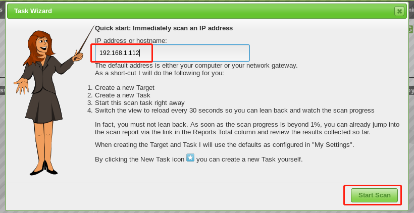 scan→Tasks→Task Wizard - 输入扫描主机IP: