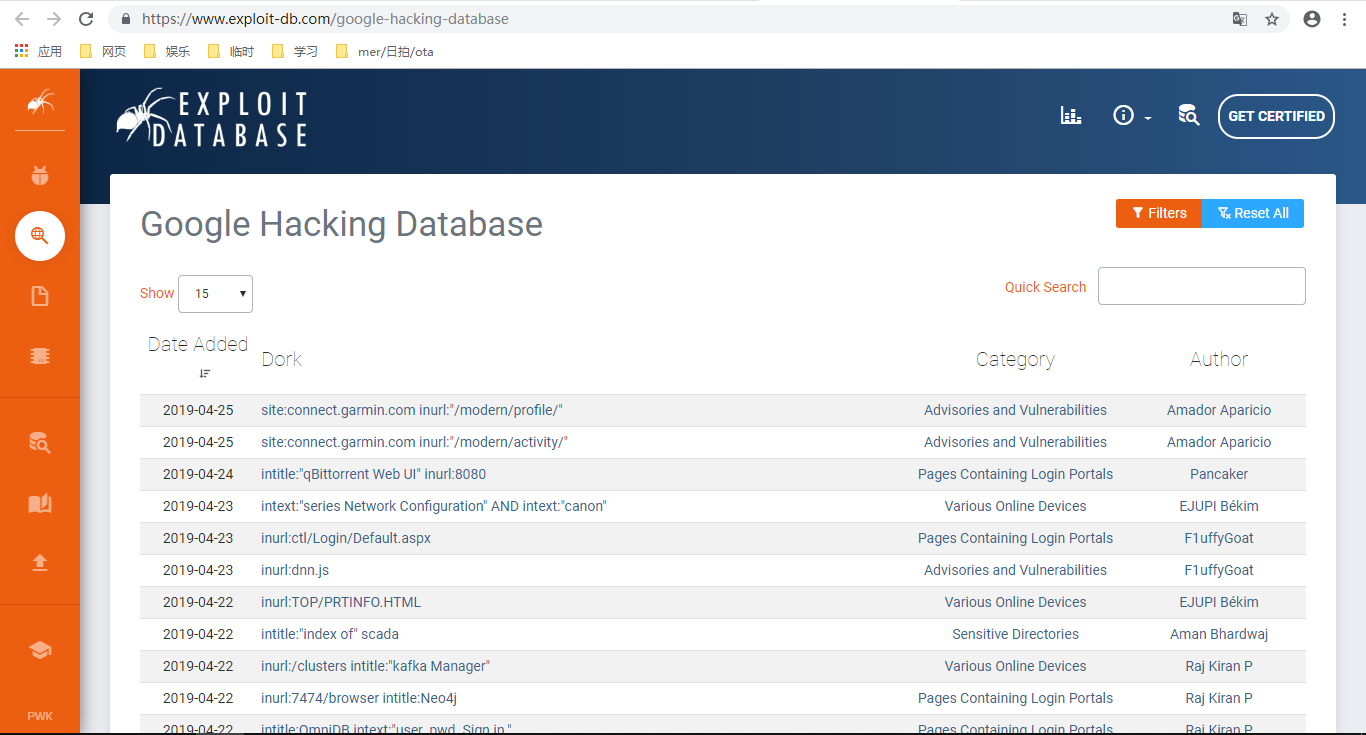<font size=3> Google Hacking是利用谷歌搜索引擎,配合一些语法,在互联网中实现开放式搜索,找到我们需要的信息。轻量级的搜索可以搜素出一些遗留后门,不想被发现的后台入口;中量级的搜索出一些用户信息泄露,源代码泄露,未授权访问等;重量级扫描则可能是mdb文件下载,CMS 未被锁定install页面,网站配置密码,php远程文件包含漏洞等重要信息。</font>
