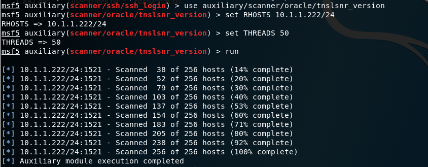 use auxiliary/scanner/oracle/tnslsnr_version //进入oracle模块