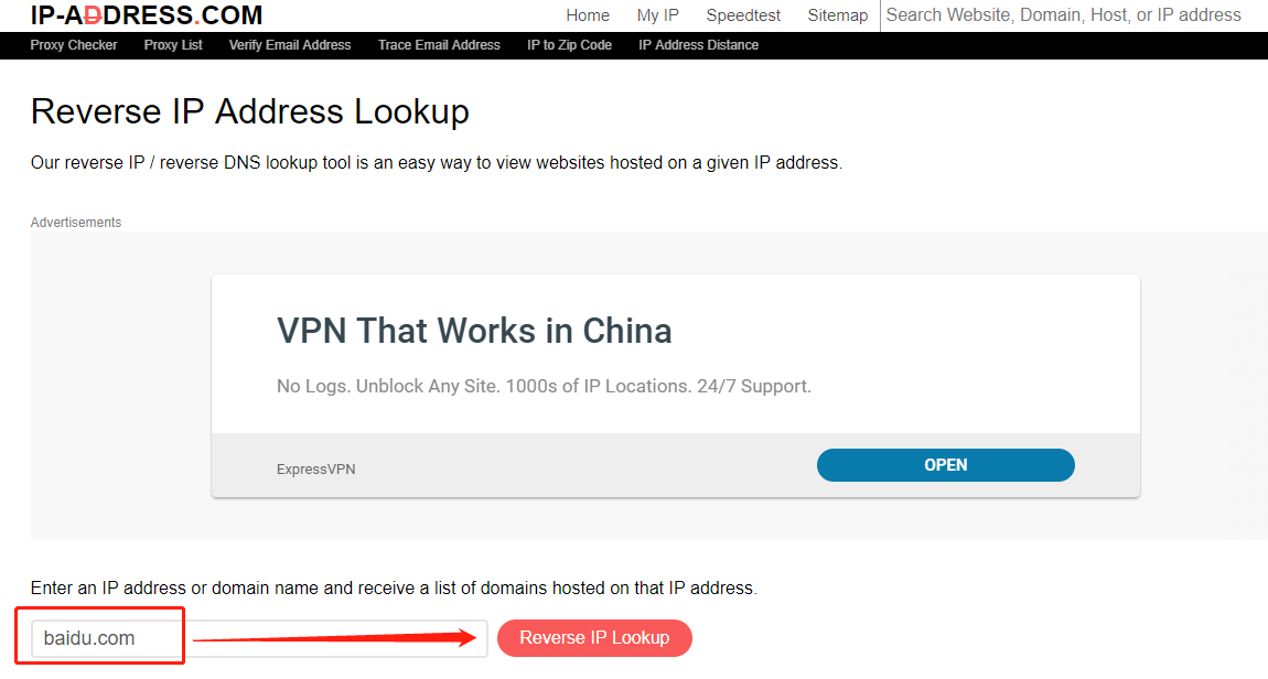 - 进入IP-ADDRESS.COM,通过IP2反域名查询到主机