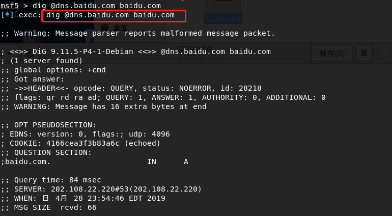 dig @dns.baidu.com baidu.com,其中dns.baidu.com为DNS服务器