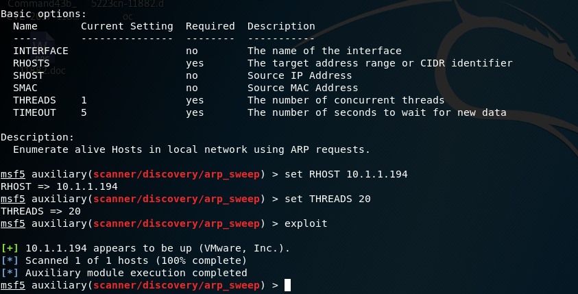 - modules/auxiliary/scanner/discovery中的arp_sweep, ipv6_multicast_ping, ipv6_neighbor, ipv6_neighbor_router_advertisement, udp_probe,udp_sweep等