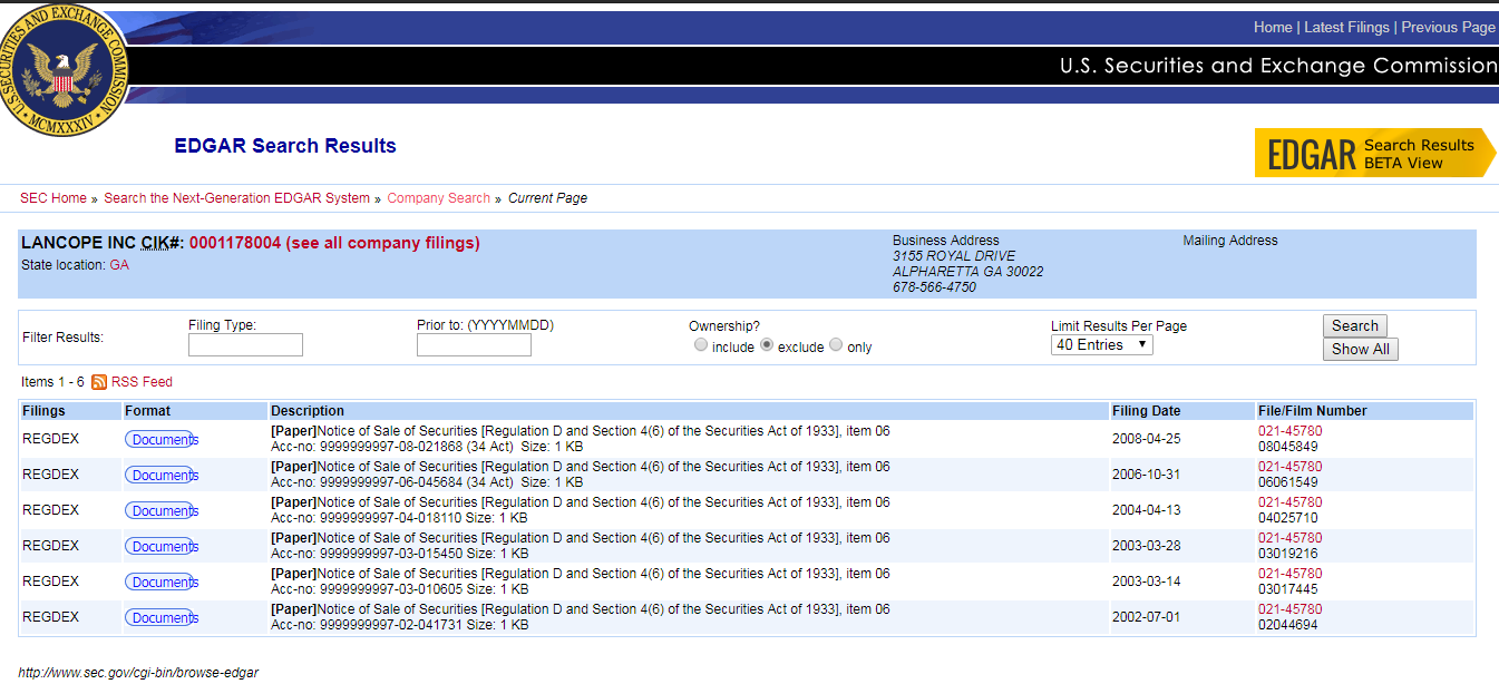 首先 查询Lancope 公司的有关信息 (lancope已经被Cisco收购,之前是一家软件安全公司) EDGAR 可以查看到公司公开过的所有信息