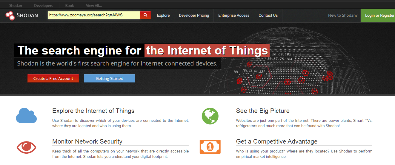 6、Shodan(一个搜索引擎) 可以收缩硬件设施型号,部署的地理位置 (类似于另一款在线工具 Zoomeye)