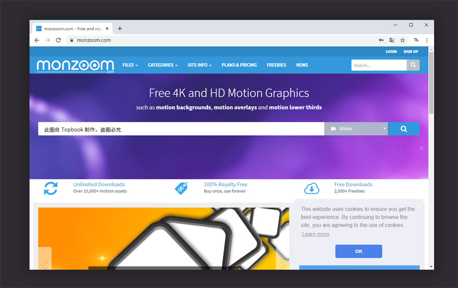 在一些特定的视频制作场景中,我们需要使用一些特定的视频背景素材,在 monzoom 当中,只需要根据自己的查看和搜索,找到合适的背景素材,即可免费下载,不过仍然需要注册一个账户。