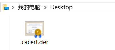 下载到桌面后,得到的是一个 cacert.der 的文件,而并不是我们常见的 .cer 格式的证书,这是因为证书的编码方式不一样导致的,但是这并不影响我们后续的导入证书