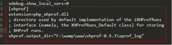 [xhprof] extension=php_xhprof.dll ; directory used by default implementation of the iXHProfRuns ; interface (namely, the XHProfRuns_Default class) for storing ; XHProf runs. xhprof.output_dir="F:\wamp\www\xhprof-0.9.3\xprof_log"
