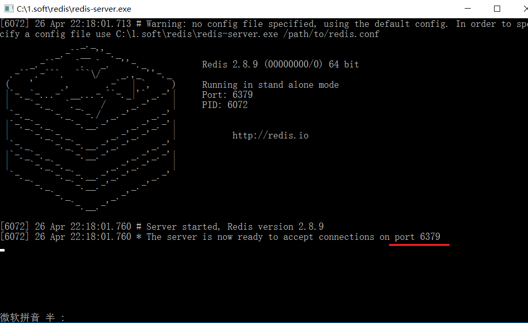 - 双击 redis-server.exe 文件打开黑窗口,表示服务运行中。