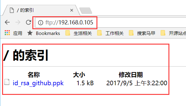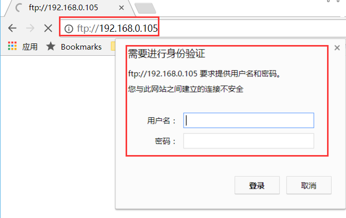 3.1 浏览器或者文件管理器地址栏输入ftp地址(ftp://192.168.0.105)