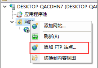 2.2.4 IIS网站管理器“网站”右键弹出菜单点击“添加FTP站点”