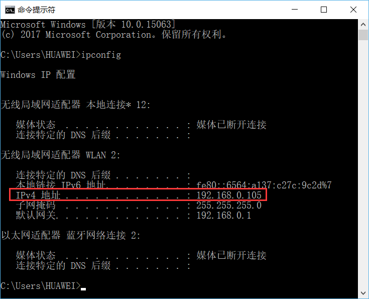 2.2.2 查看本机ip地址,后续访问Ftp地址需要用到(打开cmd输入ipconfig)