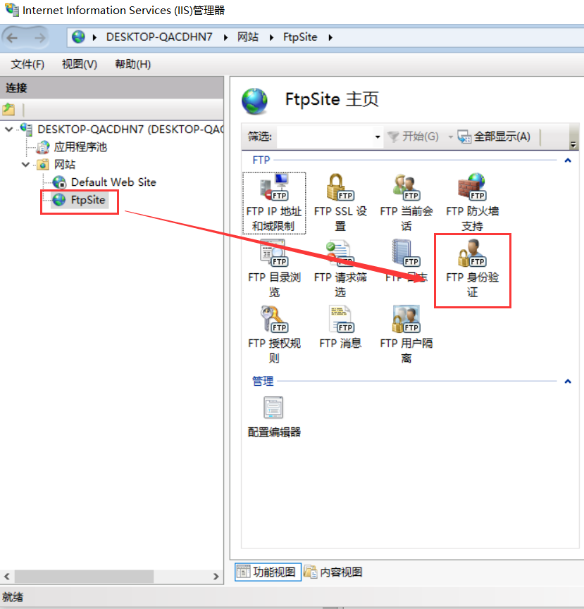 3.2 IIS管理器中的FTP身份验证里面配置启用匿名身份认证(无密码)