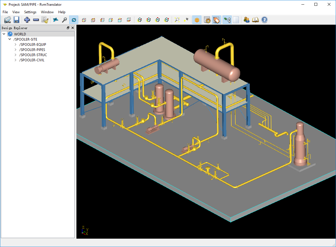 RvmTranslator可以将AVEVA PDMS/Plant/Marine中导出的RVM文件进行可视化,以及将RVM转换成常见的三维文件格式。如STEP,IGES,STL,DXF, OBJ, 3DPDF, 3DXML, IFC等,便于与其他CAD系统进行数据交换,如Autodesk AutoCAD, Plant3d, 3ds Max, CATIA, Solidworks, Pro/E, Unity3d, Bentley等。
