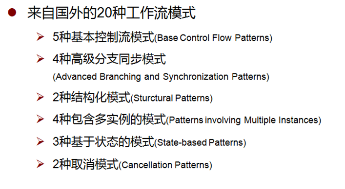 国外工作流比较通用的就是满足21种流程模式的支持。