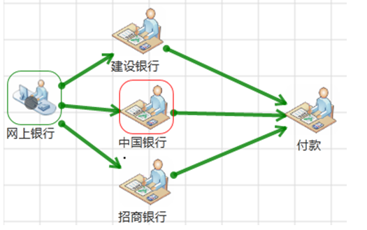 例子:比如发货在建设银行和中国银行等支付方式中的一个完成后才被激活。