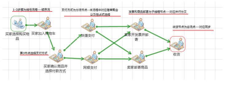 例子:比如在淘宝买了个商品需要开发票,那么卖家就需要一边准备商品发货,一边准备发票邮寄。