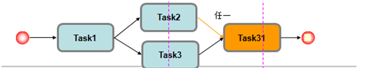 在流程中有2个以上的分支中某一个点处被合并成一个分支,只要分支中的一条完成,即可继续进行,而其他分支自动结束。
