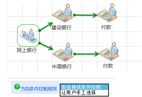 具有分支的线性流程。可以由方向条件控制,也可以由用户手动控制。