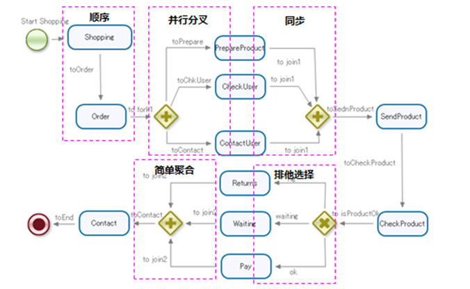 - 基本控制流程模式,在ACTIVITI 中与JFLOW中的综合实现。