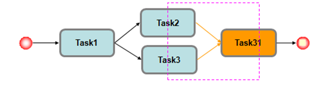 在流程中的某个点,多个并行的子流程或者活动,合并成一个流程。流程必须等待所有的分支都执行完成后,才能激活后续活动。