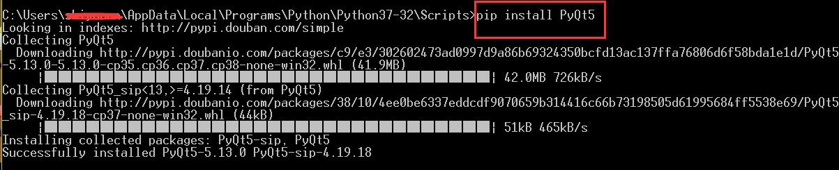 (1)使用pip工具安装PyQt5工具。执行pip install PyQt5