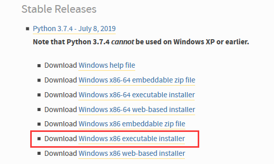 (1)Python官网下载Python3.X 32位最新版本。获取路径:Python官网,下载32位版本的原因是通常pyqt工具开发完成的程序都需要编译成可执行程序发布。而使用32位额Pyinstaller打包发布exe软件在32位和64位电脑都能运行。如果是64位版本,就只能运行在64位版本电脑。