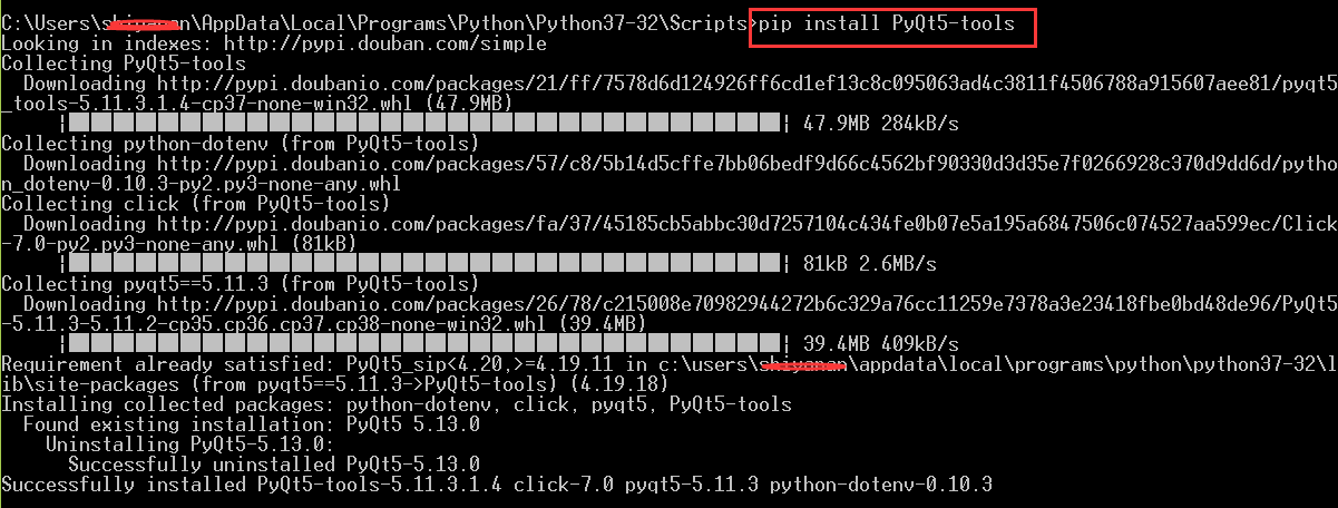 (2)安装Qt Designer图形界面开发工具。执行pip install PyQt5-tools