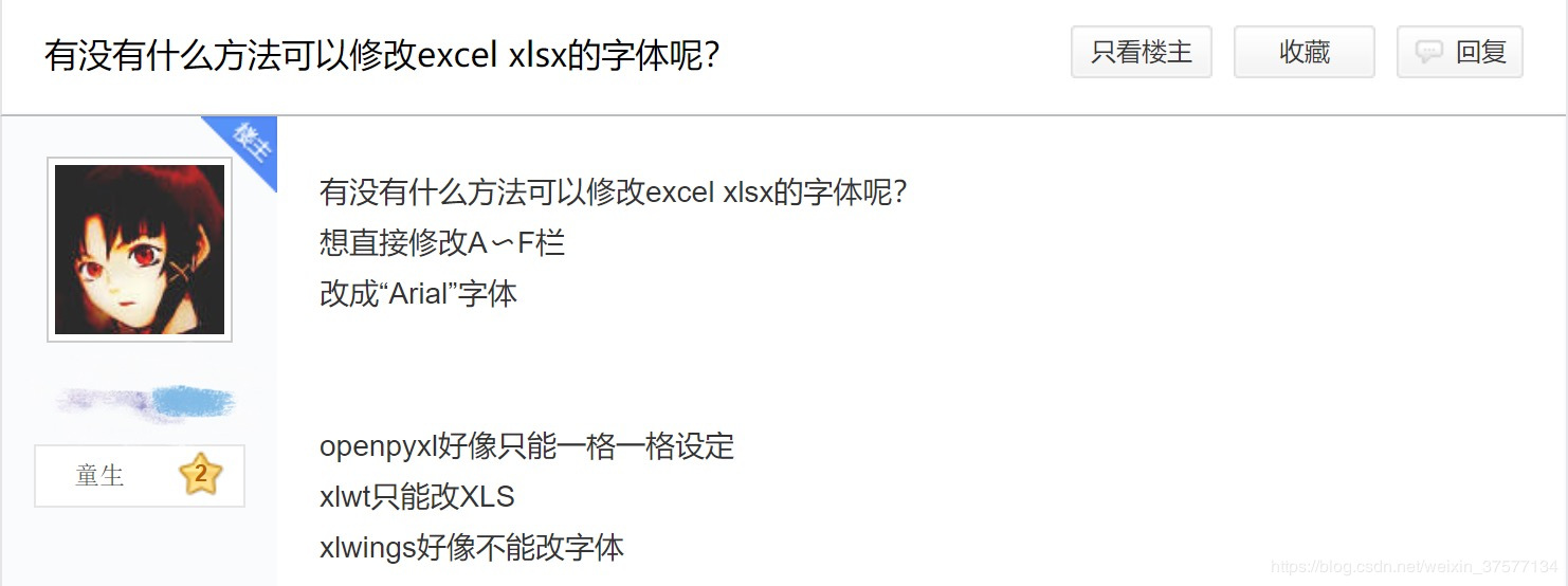 这部分是今天主要解决的问题。目前网上我所看到的所有关于xlwings的资料都没有提到设置字体的方面,甚至我在官方文档[2]中也没有看到关于设置字体的函数,在贴吧里还看到有兄弟说xlwings不能修改字体: