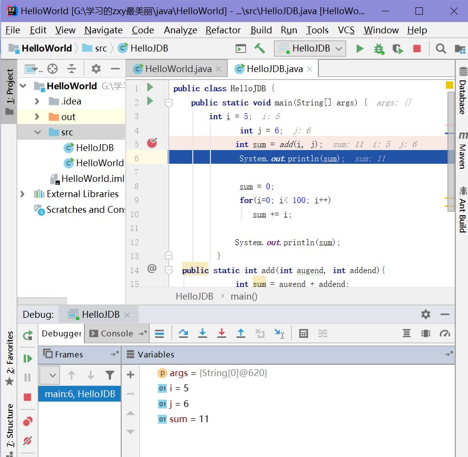 使用IDEA编辑、编译、运行、调试Java程序。