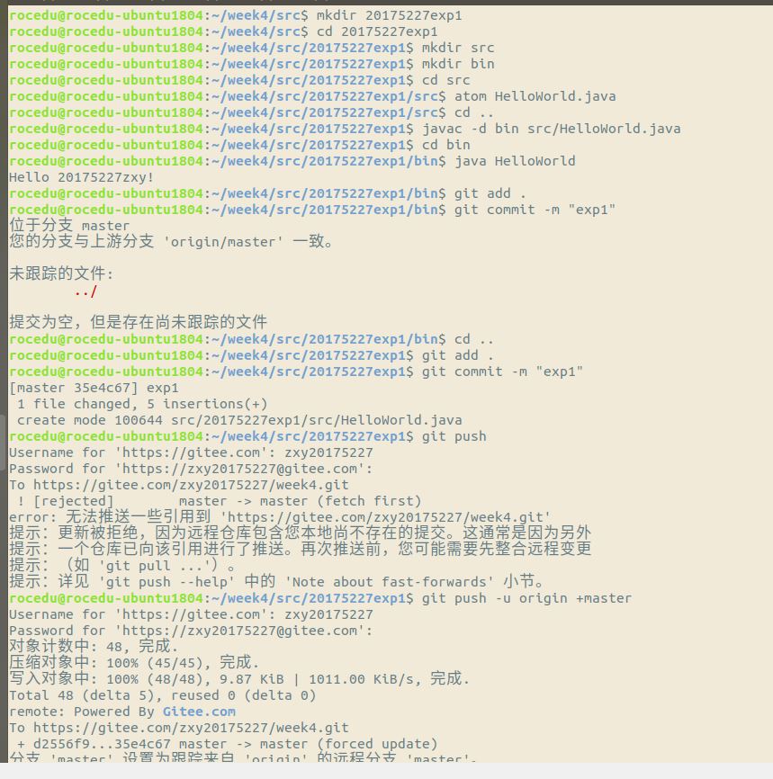 - javac,java的执行在“自己学号exp1”目录