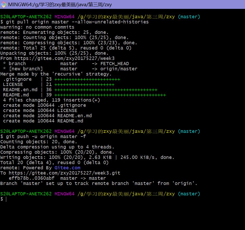 git pull origin master --allow-unrelated-histories”,“git push -u origin master -f”即可。
