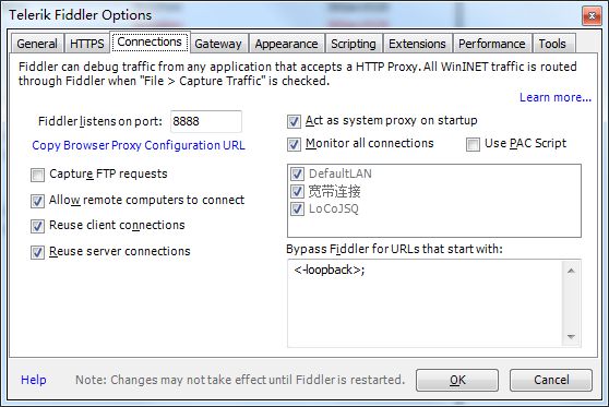 Tools——Telerik Fiddler Options——Connections——在Fiddler listens on port 处 填写 端口号