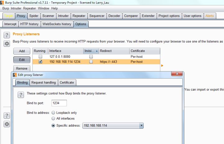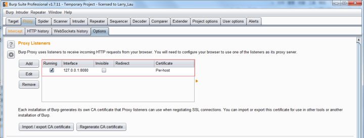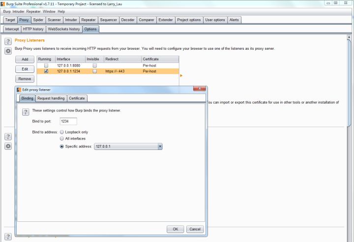 开始我以为burp是拦截本地的代理的,所以如果代理设为一个内网的代理而不是127.0.0.1的话那127.0.0.1电脑上的就不能拦截了,其实并不是。