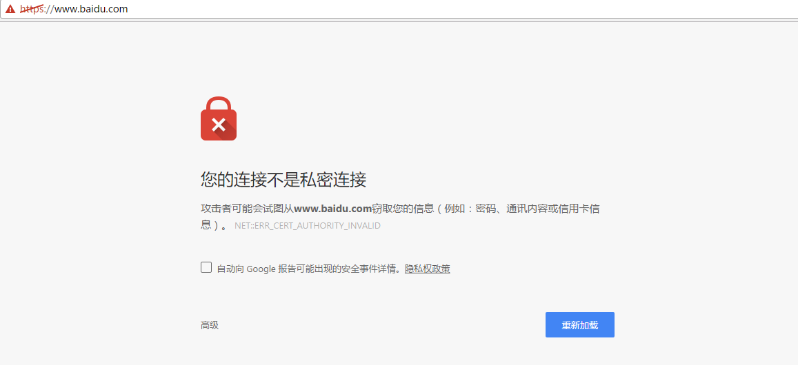 在使用Burp site对HTTPS进行拦截时他会提示,你的连接不是私密连接或此连接不信任等,这是由于通常情况下burp默认只抓HTTP的包,HTTPS因为含有证书,因而无法正常抓取,抓HTTPS数据包就需要设置可信证书。