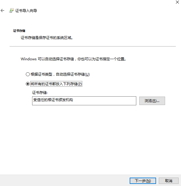 所有浏览器在安装PortSwiggerCA.crt证书时,必须安装到“受信任的根证书颁发机构”中