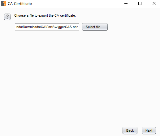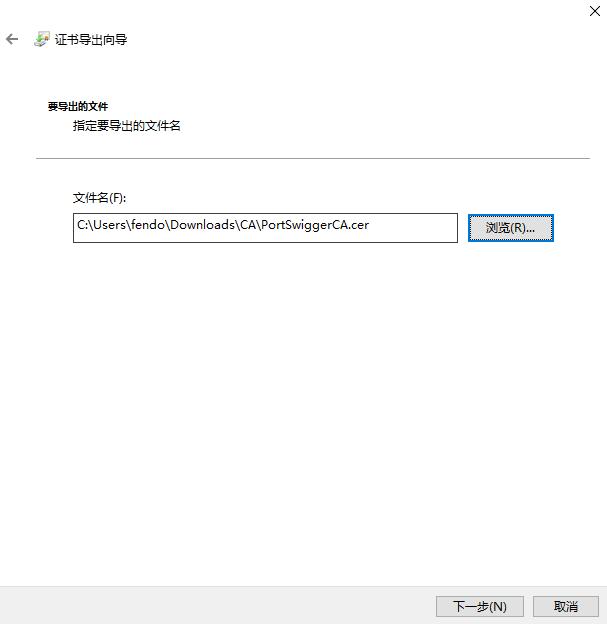 --->导入刚才的cacert.der文件,那么在服务器中就会存在“PortSwigger CA”这样的证书(burp的内置证书)、然后选中它进行导出