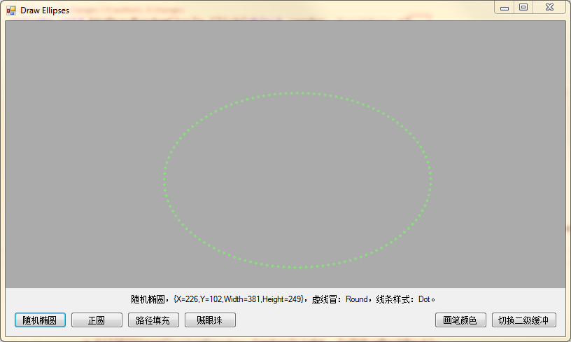 81 ShowInformation($"随机椭圆,{rectangle},虚线冒:{dashCap.ToString()},线条样式:{style.ToString()}。");