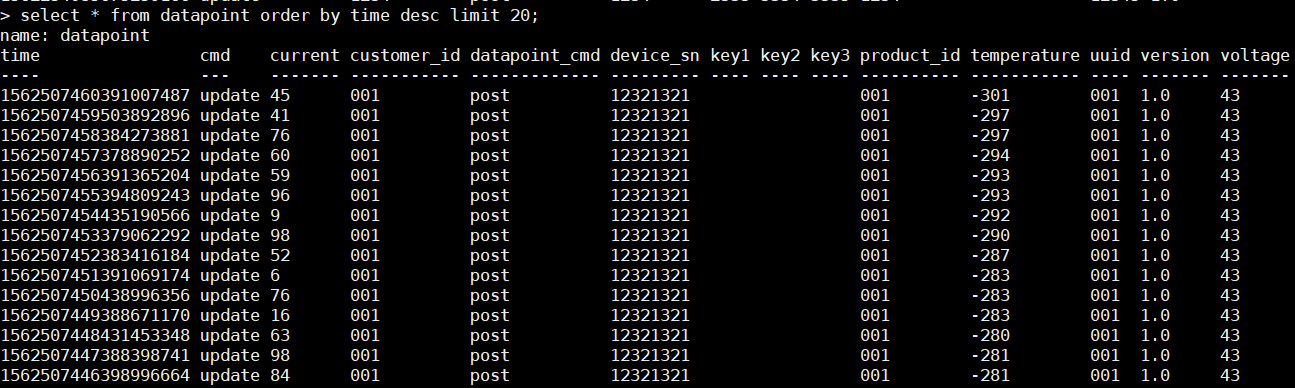 下面这个是查询InfluxDB得到的表数据。