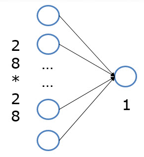 在“房价预测”深度学习任务中,我们使用了单层且没有非线性变换的模型,取得了理想的预测效果。在“手写数字识别”中,我们依然使用这个模型预测输入的图形数字值。其中,模型的输入为784维(28*28)数据,输出为1维数据,如图1所示。