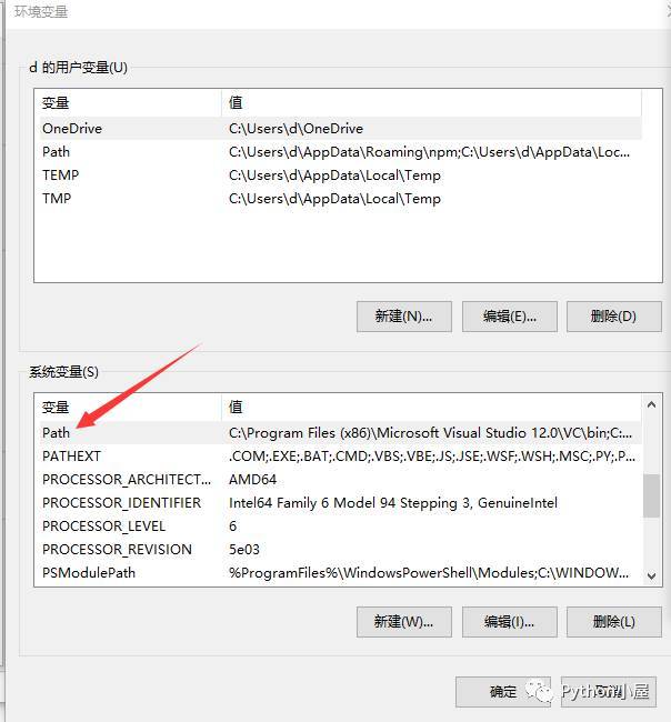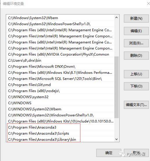在上面的窗口中双击“Path”,弹出下面的窗口,如果没有红色矩形内的几个路径,就单击右侧的“新建”添加新的路径,让Path变量包含下图中红框内的几个路径。