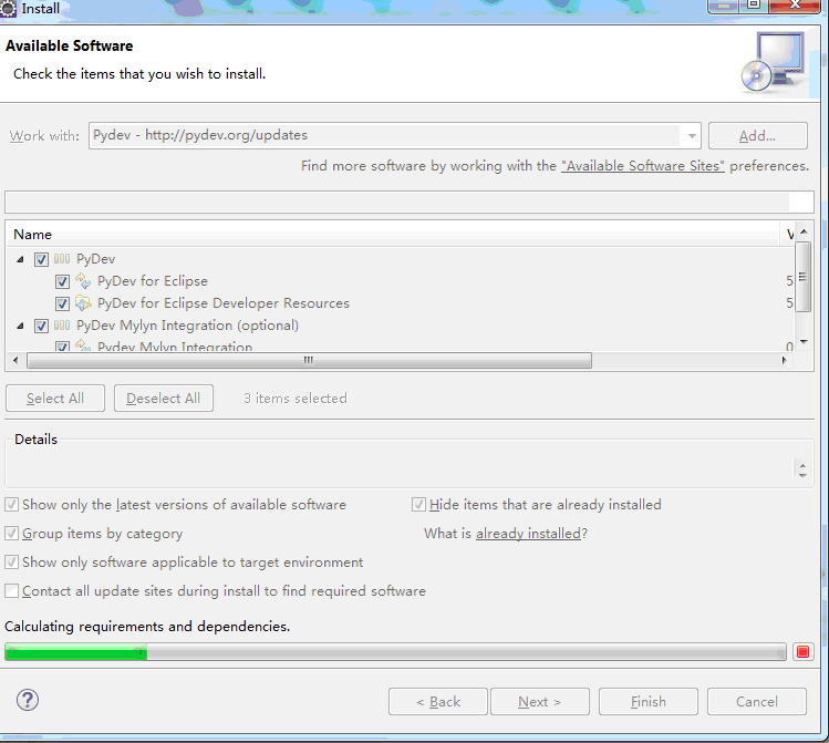 在这里我们以Eclipse with PyDev插件的形式来构建一个Lib,可以从http://www.pydev.org/下载对应的插件,也可以通过eclipse在线安装的方式进行安装,在线安装安装地址:http://www.pydev.org/updates